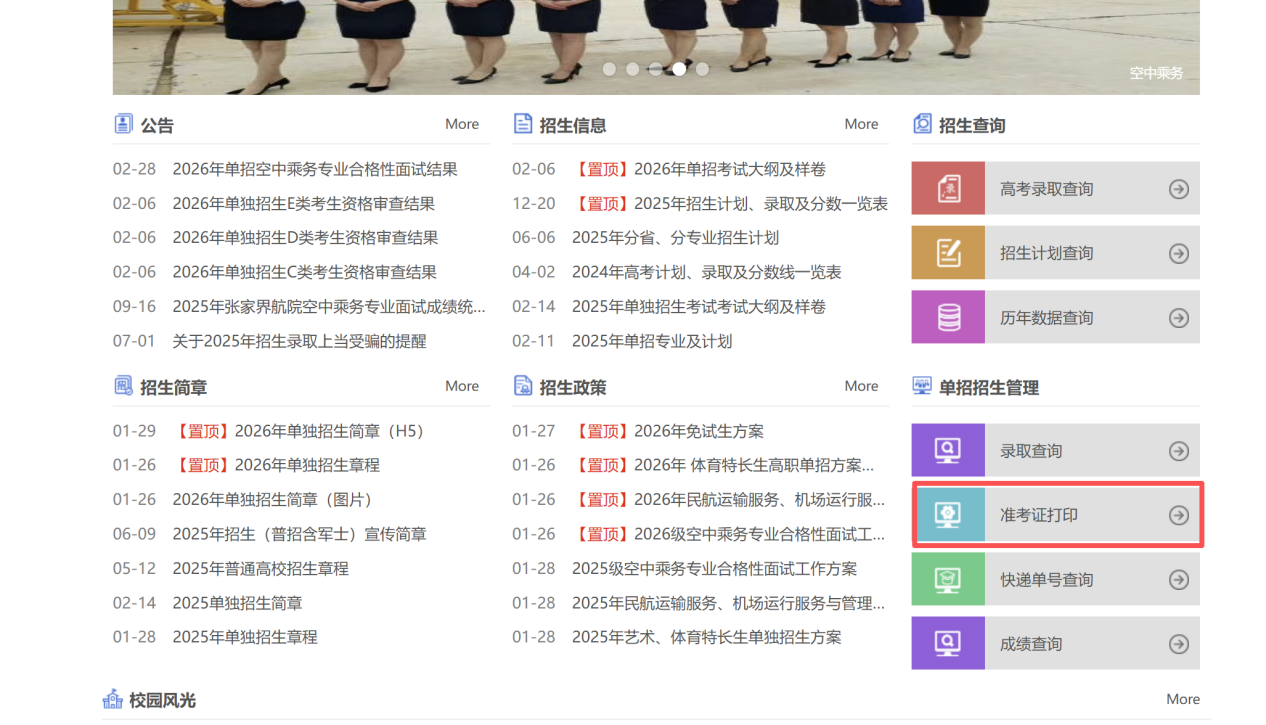 2.在“招生就业”页面,点击“准考证打印”;