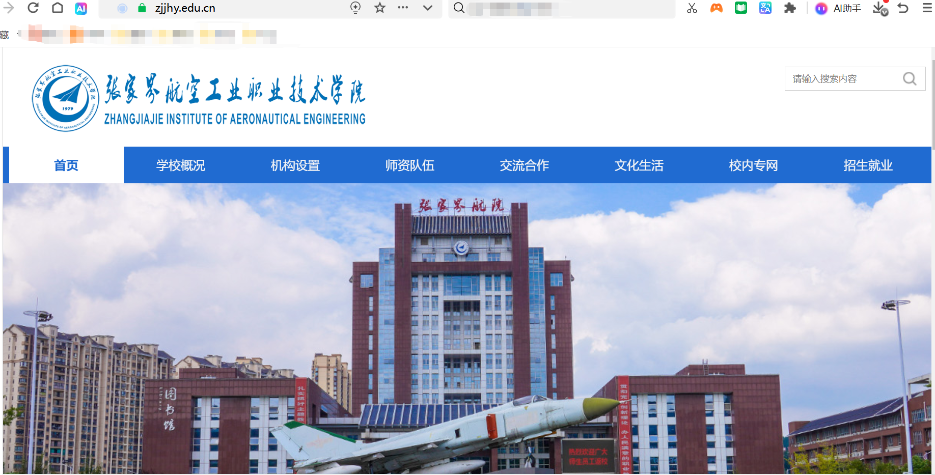 1、登录https://www.zjjhy.edu.cn/,进入张家界航空工业学院官网
